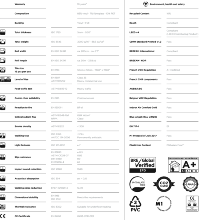 2tec2, ofisler, kamusal alanlar, sağlık ve perakende satış gibi yüksek trafikli yerler için tasarlanmıştır. Bu nedenle, neredeyse hiç bir değişiklik göstermez, leke tutmaz, su geçirmez, temizlenmesi kolay ve son derece sağlamdır. 2tec2, hem sert yüzeyli döşeme hem de halının en iyi özelliklerini birleştiren mükemmel bir fonksiyonel örgü döşemedir. Yeni seride örgü vinil, akustik özellikler ve iyileştirilmiş ayak altı konforu ile sunuluyor. Bu yenilikçi destek hem ortam hem de darbe sesini azaltıyor.